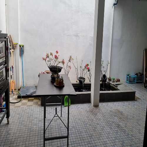 Kolam ikan di area belakang, menambah kesan alami dan sejuk