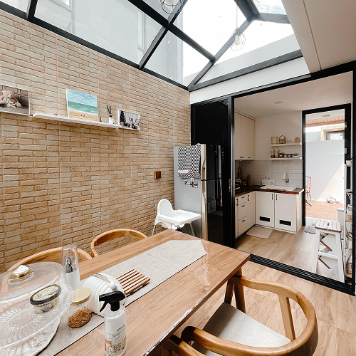 Ruang makan dengan konsep terbuka, terintegrasi dengan dapur